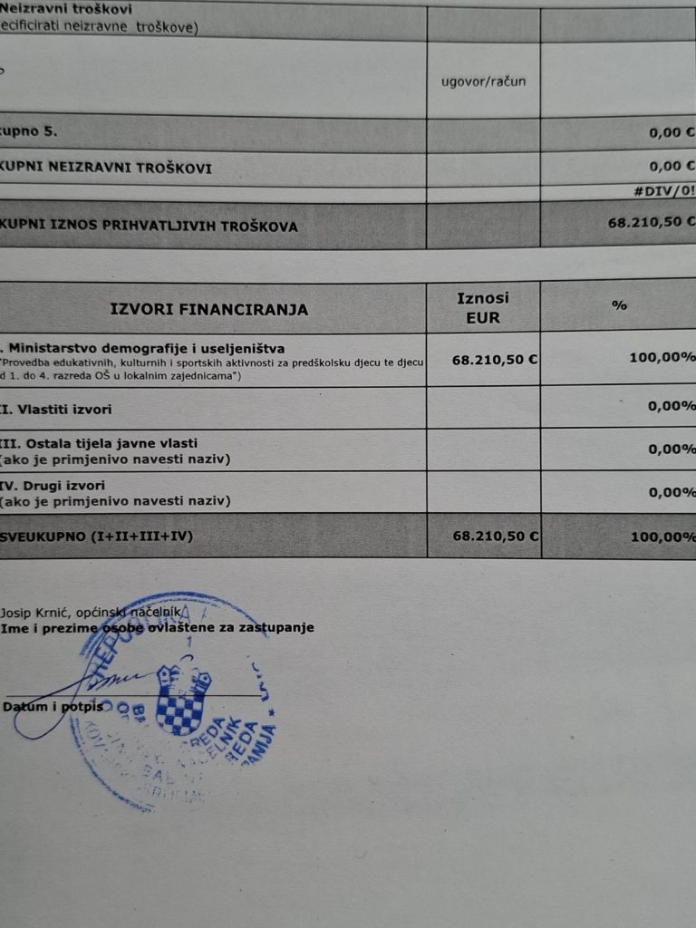 danas je općinski načelnik Josip Krnić potpisao ugovor s Ministarstvom demografije i useljeništva o financiranju projekta “Pametna sela rastu uz veselu djecu” u iznosu od 68.210,50 eura (100 %).